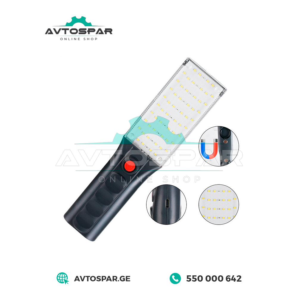 Рабочий светодиодный фонарь - LED განათება- ინტეგრირებული აკუმულატორი- მოყვება დამტენის კაბელი- აქვს დაბალი საშუალო და მაღალი განათების რეჟიმი- SOS გამოძახების...
